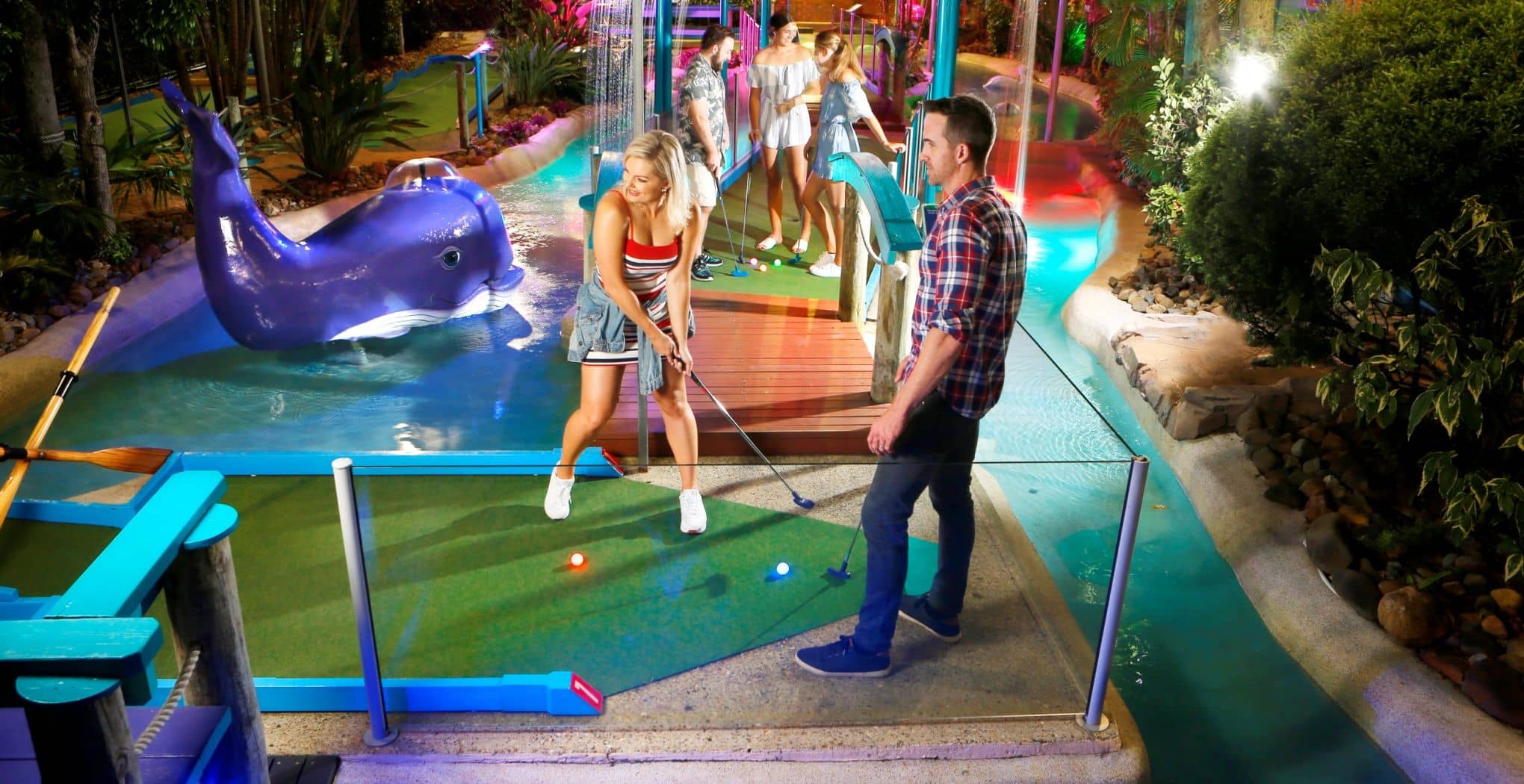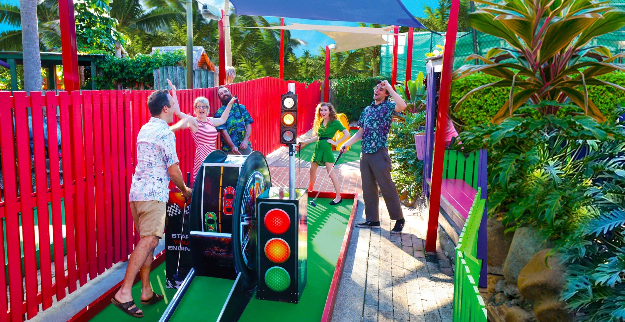 Take a putt on the wild side in our tropical Jungle Trail, get amongst colourful characters and tricky motorised obstacles on Fun Run and escape to a tropical oasis playing Waterways.