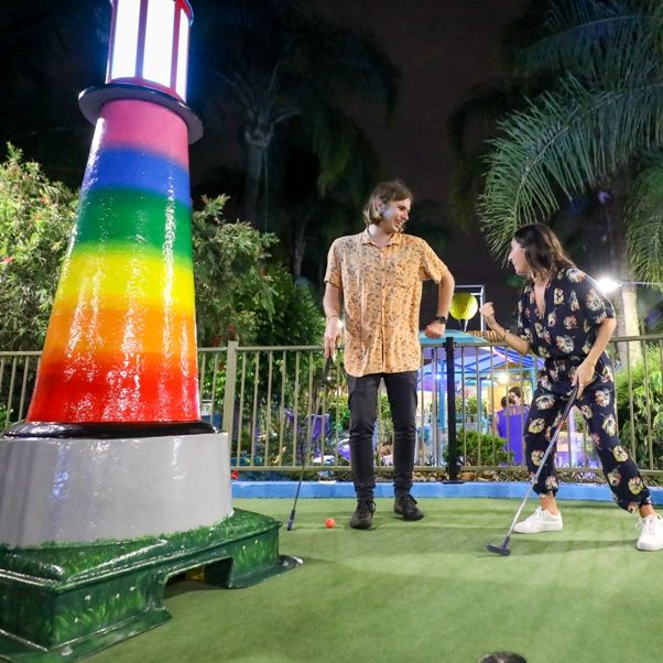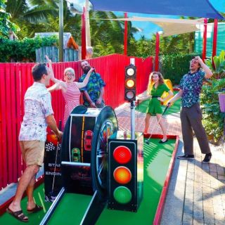 Did someone say putt putt paradise? Get all swept up in a tropical oasis of cascading waterfalls, cheeky turtles, shipwrecked pirates and a frolicking dolphin on the Waterways Course. Hang out along the shimmering blue lagoon, tip toe over wooden bridges and take on the challenge of Tiki spinners. Be dazzled by light displays come nightfall and make your way towards our mesmerising lighthouse.