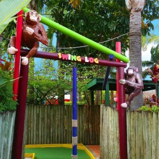 Take a walk on the wild side in the tropical Jungle Trail. Get amongst our tribe of animals - have a chat with a talking parrot, meet the ‘King of the Jungle’ himself, hug a big ol’ grizzly bear and see some friendly elephants who really love the sound of their own trumpets as you putt away on safari. Discover hidden retreats nestled in a labyrinth of gardens and spice up your game with safari spinning challenges.